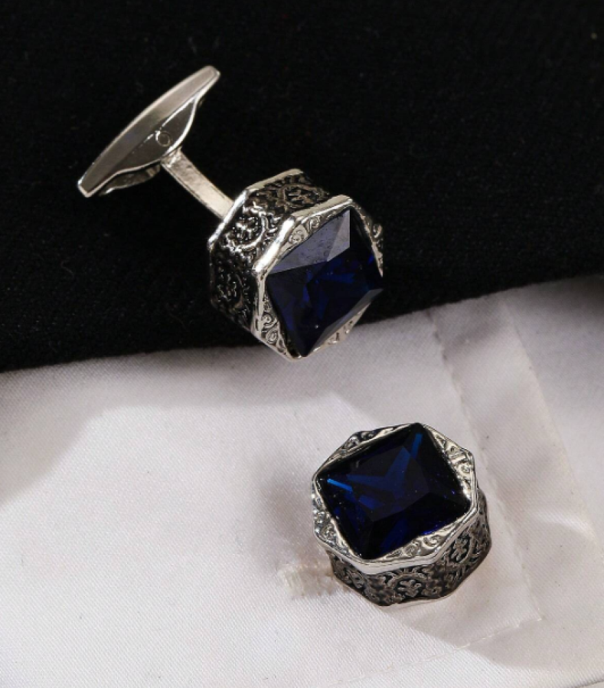تخيل يدك تلمع مع أزرار أكمام فاخرة من سبيكة فضية مرصعة بـ ياقوت أزرق غامق!