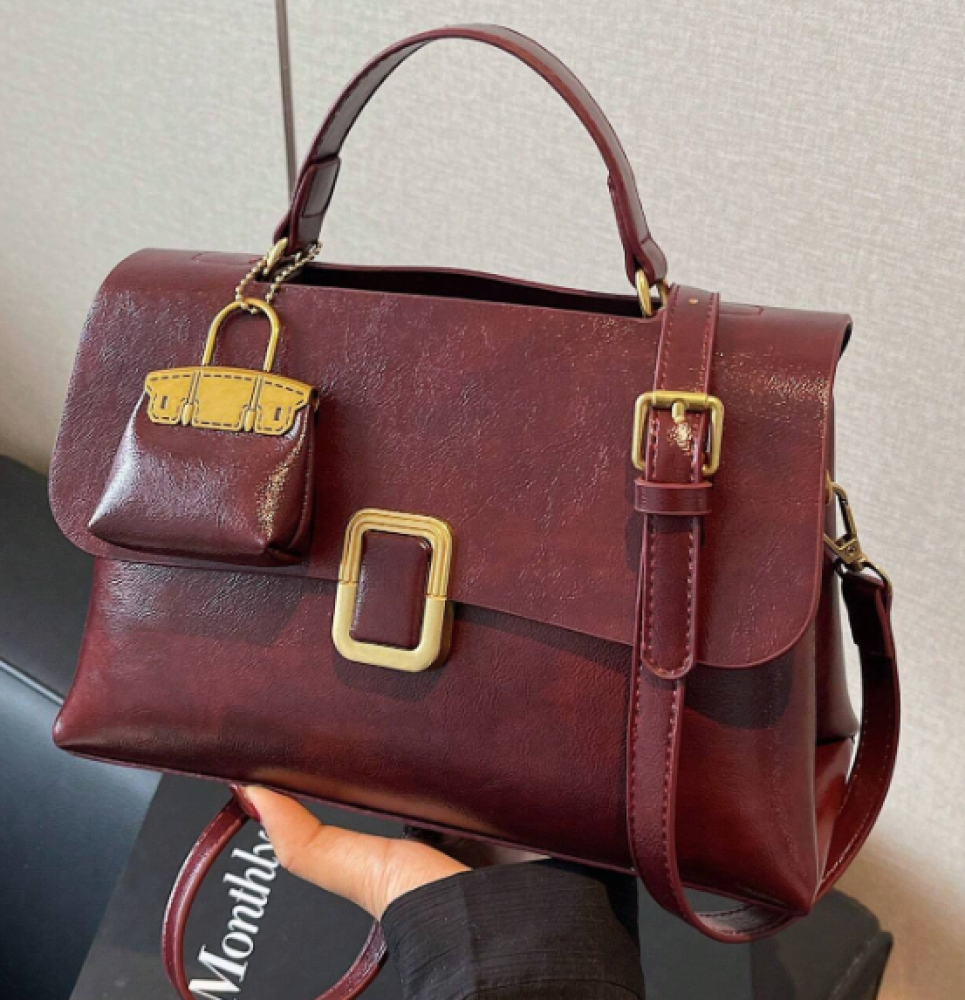 - حقيبة يد نسائية لونها البرغندي الغامق مع اللمسة الذهبية يعطيك فخامة ويخليك دايم ملفتة.