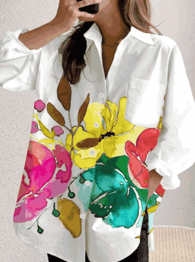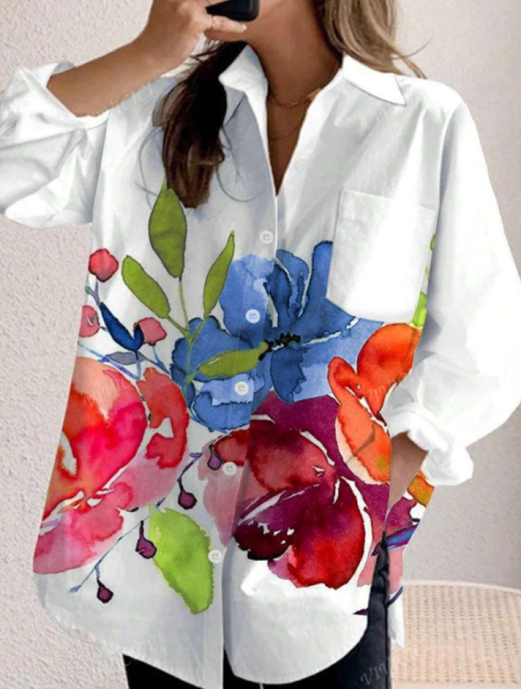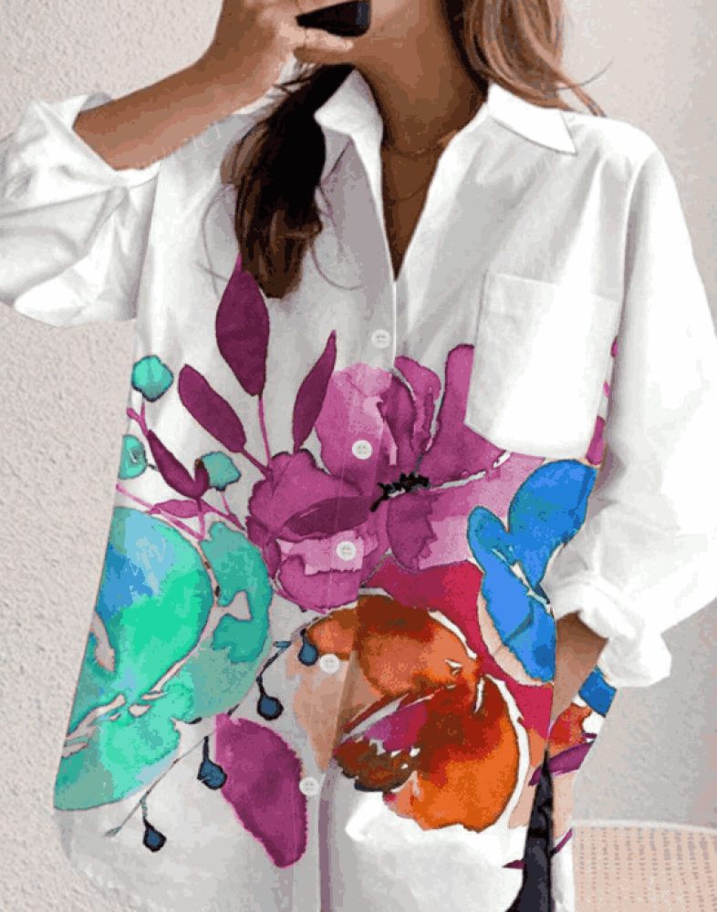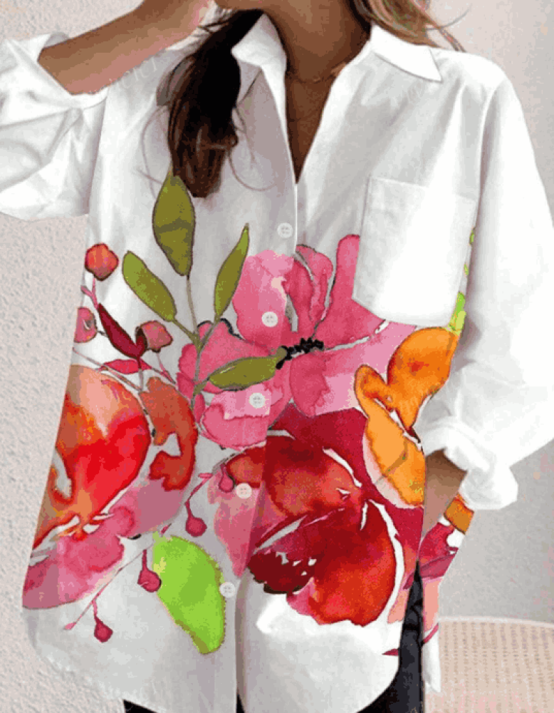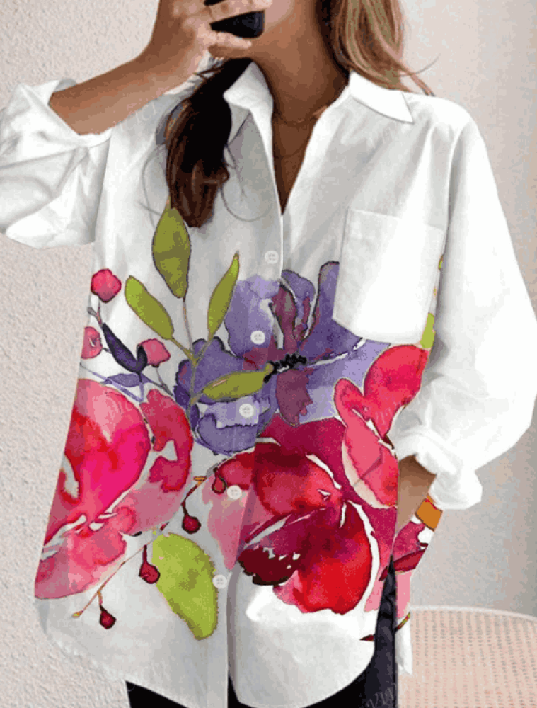 مع قميص منقوش طويل الأكمام بنمط الزهور هذا راح تحسين بالفرق مو بس قميص هو قطعة تزرع فيكِ شغف وتخلي حضورك مليان فضول وأناقة ستايل يفرقك عن الباقين ويخليك مميزة بخطواتك وثقتك.